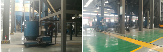 由于全自動(dòng)布料機(jī)組不易拍攝,所以用該企業(yè)另一車間的布料機(jī)圖片代替。